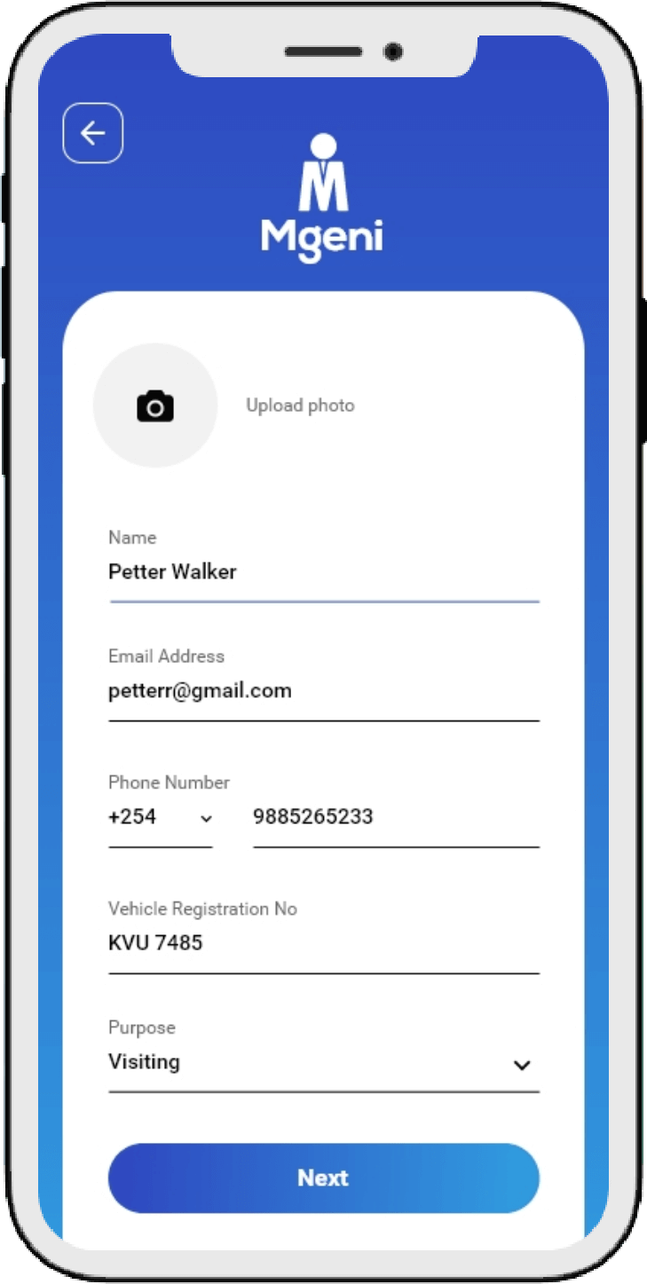 Mgeni App Provides you with a contactless check-in system for your visitor to help them check-in with the help of their mobile phone.